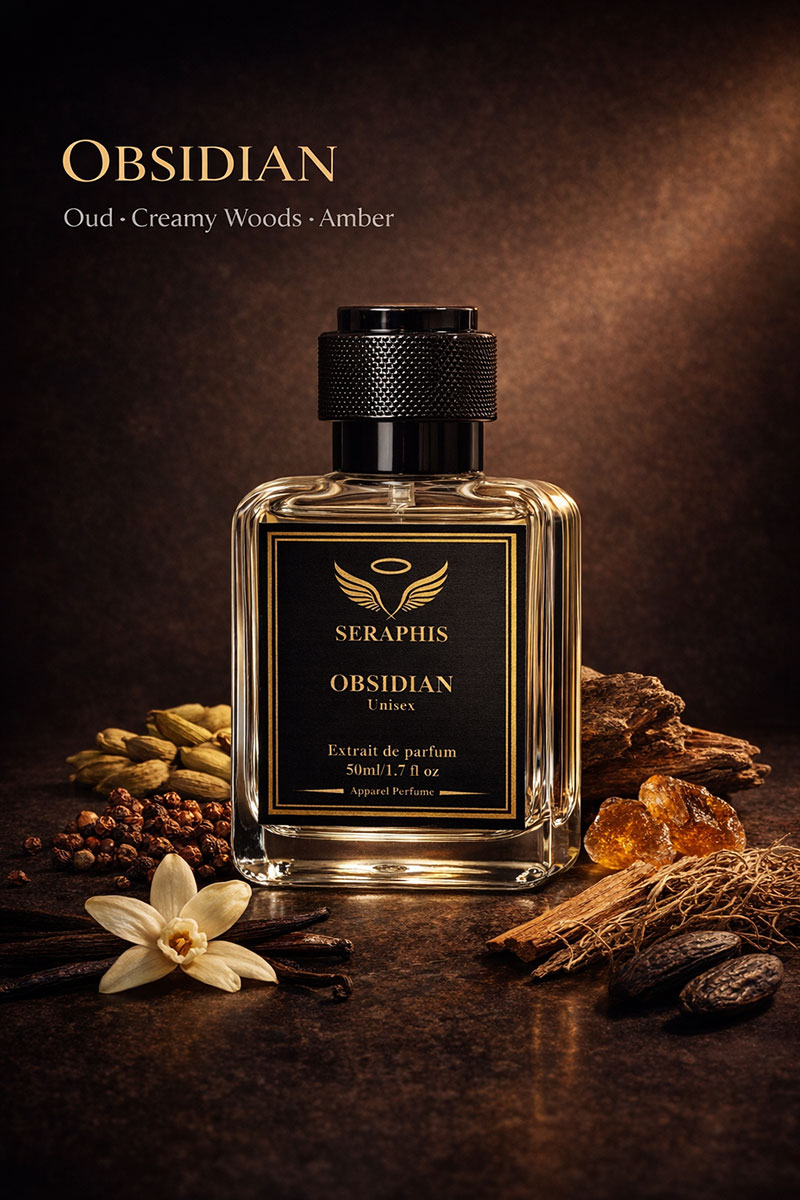 OBSIDIAN by Seraphis embodies quiet power and refined strength. The fragrance opens with deep, captivating notes that immediately command attention while maintaining elegant balance.